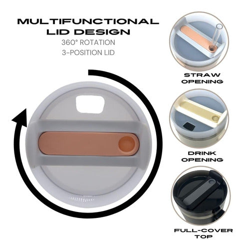 Con un aislamiento al vacío de doble pared que mantendrá su bebida helada durante horas, el Quencher es perfecto para aventurarse en busca de nueva inspiración. Diseñado para caber en la mayoría de los portavasos, el Quencher cuenta con un mango cómodo para agarrarlo y llevar fácilmente. La tapa avanzada FlowStateTM gira en tres posiciones: una abertura de paja, una para beber y una tapa de cubierta completa para ayudar a evitar salpicaduras y derrames.